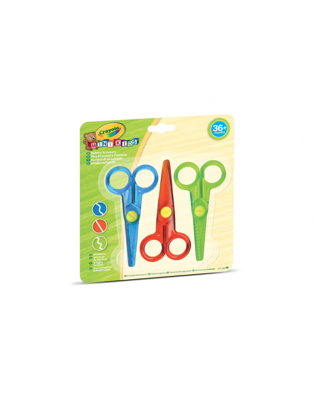 Crayola Mini Kids plastikust käärid on loodud mõeldes väikelaste maksimaalsele ohutusele ja need lõikavad ainult paberit. Komplektis on 3 ümara otsaga kääri erineva mustriga lõikeks: sirge, sälk, sik sak. Vanusegrupp: 3+