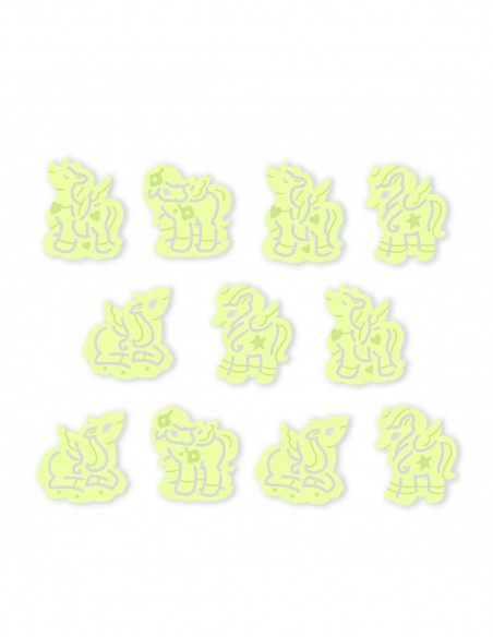 Stick the unicorns on the walls or ceiling and fill your room with glow unicorns and turn it into a fantasy wonderland. Turn off the light and watch them glow. They will glow like magic in the darkness.