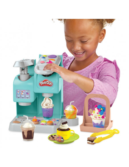 Play-Doh avab ust loovuse maailma! Andke lastele üllatavalt tõeline kohviku- ja pagariäri kogemus selle super komplektiga! Kasuta joogitegemise masinat, et valmistada Play-Doh frappe, kuuma jooki ja palju muud. Selle jaoks leiad ka palju topse ja värve. Võta need kaasa kandikul! Kasuta pagariäri väljapanekut, et luua ja kaunistada Play-Doh sõõrikuid, küpsiseid, muffineid ja muud, kasutades palju lõikureid ja vorme. Näita neid vitriinis! Lisage mängu vahukoor ja muid detaile oma maitse järgi.