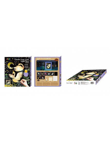 Ole loominguline, väljenda oma unikaalset stiili! Nüüd saad kraapimiskunstiga oma tuba kaunistada! Loo oma valguskast! Valikus on kaheksa erineva illustratsiooniga kaarti: luiged, öökullid, linnud, liblikad, hirv, meduusid, tulirelvad ning tühi oma ideede teostamise jaoks. Valguskast vajab töötamiseks 2xAA patareisid, ei kuulu komplekti. Karpi kasutatakse valguskasti alusena. Mõõdud 4,5 x 24 x 28 cm.