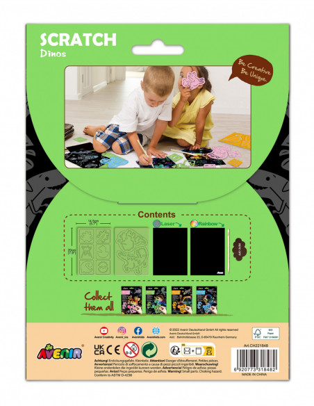 Aveniri erksavärvilised kraapimiskaardid hoiavad lapsed tegevuses ja pakuvad neile värvikaid elamusi, lisaks arendavad need loovust ning kujutlusvõimet. See kraapimiskunsti komplekt paneb teie lapse tundma end tõelise kunstnikuna! Kraabi lehti komplektis oleva spetsiaalse pliiatsiga ning loo värvilisi pilte. Iga tõmme spetsiaalse pliitasiga eemaldab musta kattekihti ning paljastuvad peened kujundid, millele tekstuuri, mustreid ja kujutlusvõimet lisades vormuvad enneolematud ja eriilmelised pildid. Komplekti kuulub 2 kraapimiskaarti, 8 šablooni, puhastuskangas, puidust kraapimispliiats.