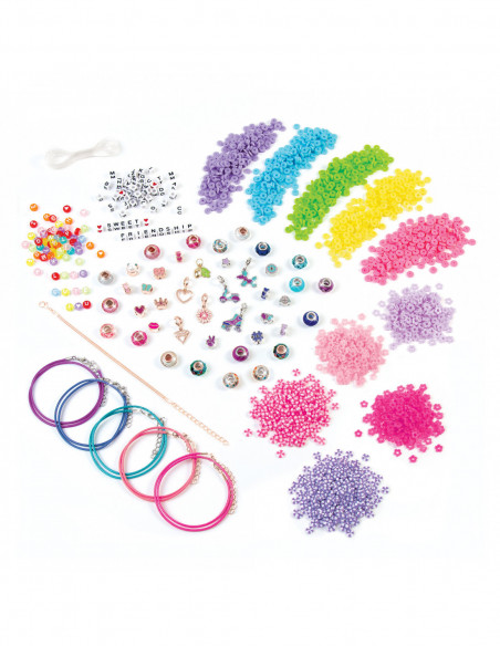 Komplektis sisalduvatest nööridest, kettidest, erinevatest ripatsitest ja enam kui 2 100 helmest saad valmistada rohkem kui 30 käevõru. Kasuta komplektis olevaid halo ripatseid, heishi helmeid ja tähestikuhelmeid ning tee sõprusekäevõrusid, mida saad sõpradega vahetada... võimalused on lõputud! See käevõrukomplekt on suurepärane kingiidee sünnipäevaks, jõuludeks või muuks sündmuseks. Sõpruskäevõrude valmistamine arendab peenmotoorikat ja võimaldab end loominguliselt väljendada. Komplekt sobib lastele alates 8. eluaastast, kes saavad komplekti abil olla loovad ja avastada oma stiili. Komplektis on kandik, mis hõlbustab mustrite loomist ja helmede paigutamist enne käevõru kokkupanekut ja selle ajal.