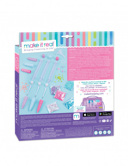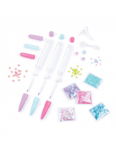 Tee ise 3 lahedat pastakat ja vaata, kuidas sära, sädelus ja kujundid pastakate sees hõljuvad. Komplektis on lehter, 3 pastakakorpust, korgid, sädelus ja erinevad kujundid. Aseta materjalid kandikule, et pastakaid täita ja korgiga sulgeda ilma suurema segadsueta. Vesi ei kuulu komplekti. Lihtsad juhised kaasas. Järgi juhiseid, et täita pastakaid või eksperimenteeri oma maitse järgi. Naudi kirjutamist ja joonistamist stiilselt ise tehtud pastakaga!