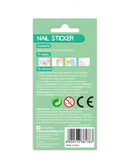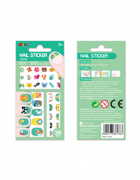 Avenir´i küünte dekoreerimiskomplekt on loodud, et muuta väikeste neidude maniküür tavalisest originaalseks! Loomade ning loodusteemaline küünekleepsu komplekt on erksate värvide ning huvitavate detailidega. Komplekt on ideaalne kingitus väikesele tüdrukule! Komplekti kuulub 38 säravat, erikujulist küünekleebist. Neid kleebiseid on lihtne kasutada ning need on vastupidavad. Kleebised püsivad kuni 5 päeva, soovi korral on nende varasem eemaldamine lihtne.
