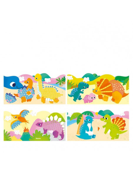 Lõbus Avenir´i loovusekomplekt "Dinosaurused" pakub lastele palju rõõmu. Tore mosaiikpilt valmib lihtsalt. Komplekts olevatelt mosaiikkleebistelt saab laps kergelt tagumise osa eemaldada ning ise kunsti luua! Kui pilt valmis, saate koos lapsega arutada, mis piltidele tekkis. Mosaiik "Dinosaurused" on parim valik neile, kes püüavad arendada lapse kujutlusvõimet ja loovust. Mosaiikpiltide kokkupanemine aitab kujundada lapse kunstilist maitset ja arendab peenmotoorseid oskusi. Komplekt treenib lapse mälu, tähelepanelikkust, sihikindlust, täpsust, vaatlusoskust. Komplekt aitab arendada lapse eneseväljendust ja eneseteostust, pakkudes lastele positiivseid emotsioone ja rõõmu. Laps veedab aega huvitavalt ja kasulikult ning saate koos tema saavutuste üle rõõmustada! Komplektis on 2 pildikaarti, 600+ dekoratiivmosaiikkleebist, 6 silmade kleepsu, plastikust pliiats.