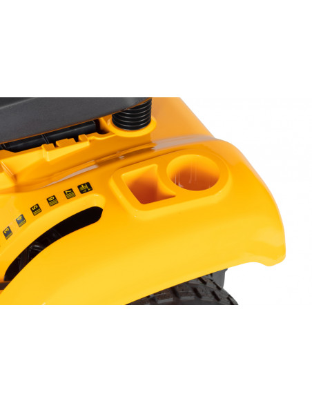 Мотоблок Торнадо 398 с боковым выбросом имеет прочный корпус косилки с двумя лопастями шириной 98 см; гидростатическая трансмиссия с педальным приводом и двигатель Стига мощностью 7,5 кВт. Зарядное устройство, комплект для мульчи и прицепной крюк продаются в качестве аксессуаров.