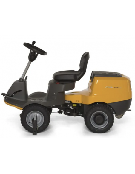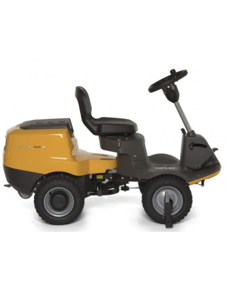 The STIGA Park 300 M front cut ride-on mower is the most compact machine in the range and is perfect for frequent cuts on lawns up to 2500 m2. The STIGA articulated steering gives the machine unbeatable maneuverability, making it possible to reach the tightest corners and spaces in the garden and navigate around the most complex obstacles. The Park 120 is equipped with a single-cylinder STIGA engine. The electromagnetic blade engagement allows the operator to activate and de-activate the blades by simply pushing a button. STIGA Park 300 M can be combined with an 85 cm Combi cutting deck, featuring Quick Flip technology, that makes maintenance and cleaning extremely easy. The cutting deck enables you to cut in mulching- or rear-discharge-mode.
