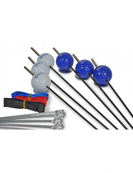 2 komplekti golfinooli (3+3), 6 vaia, 3 rihma, 1 kott