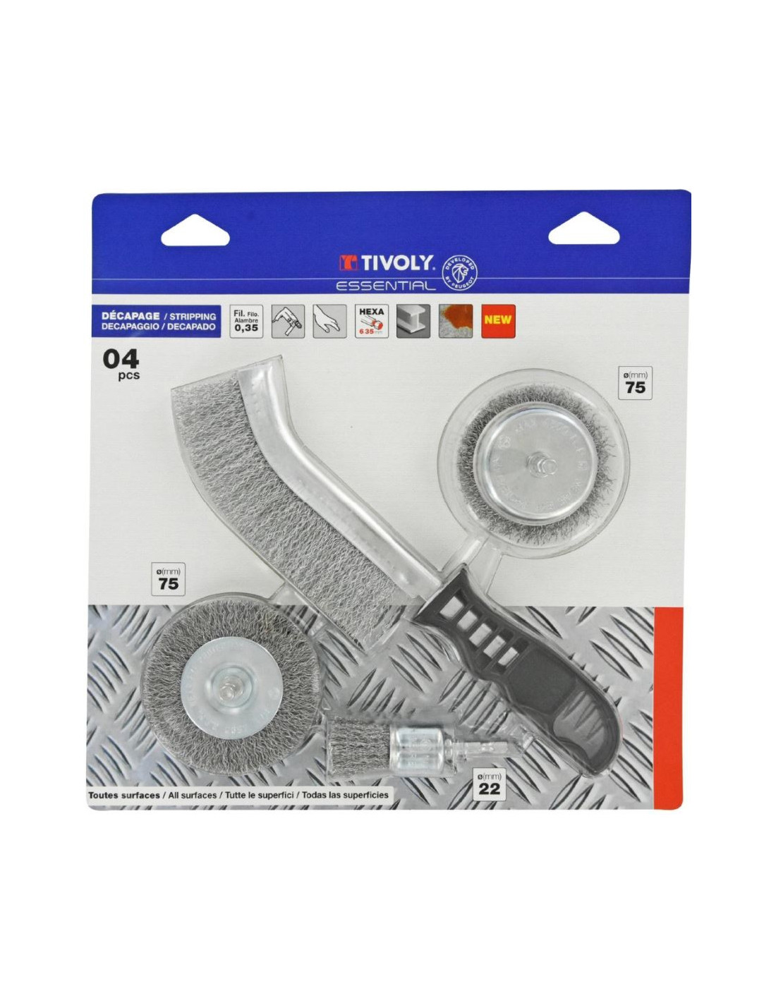 Traatharjade komplekt, kus on 3 erineva kuju ja läbimõõduga traatharja trellile ja lisaks üks käsihari.
