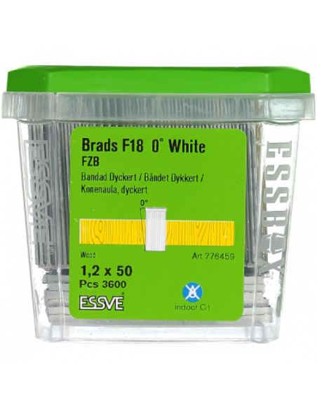 Essve гвоздь F18, 0°. Оцинкованные с белой головкой, коробка 1,2x50 C1/ 3600шт арт 776459
